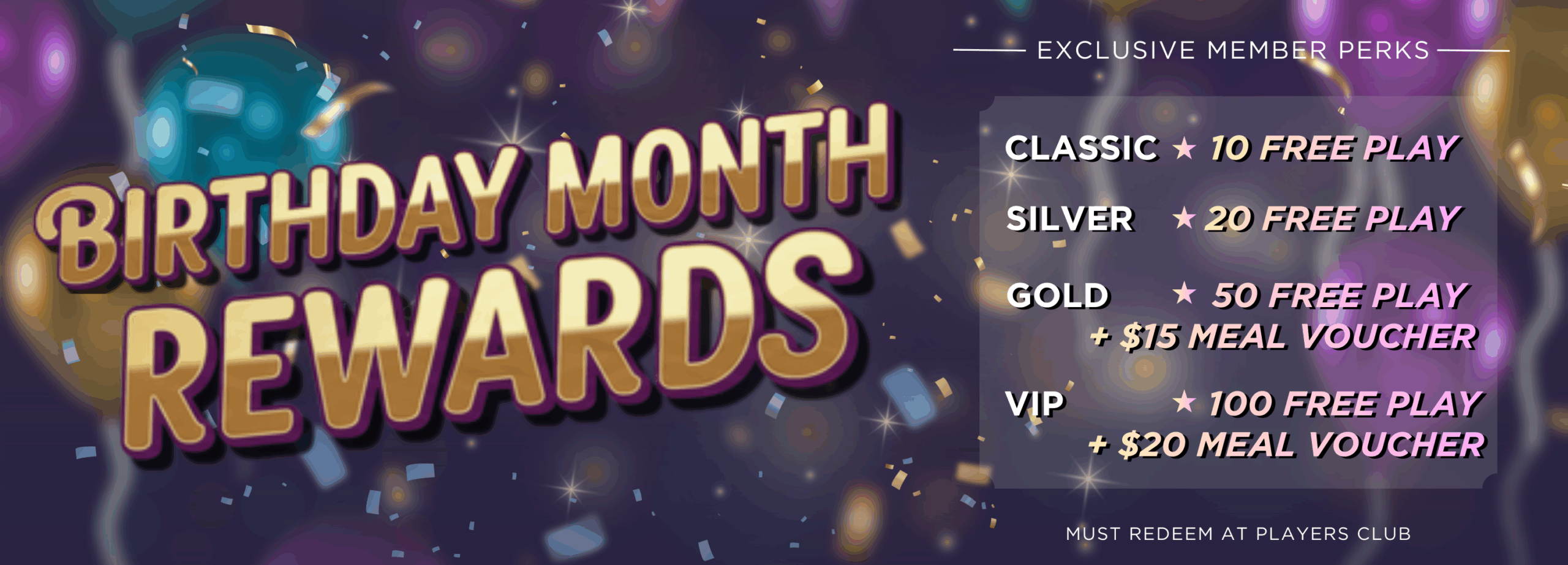 Every 100 points you earn equals $1 for more rewards and more fun! Visit the players club for details on current promotions and ways to win.
